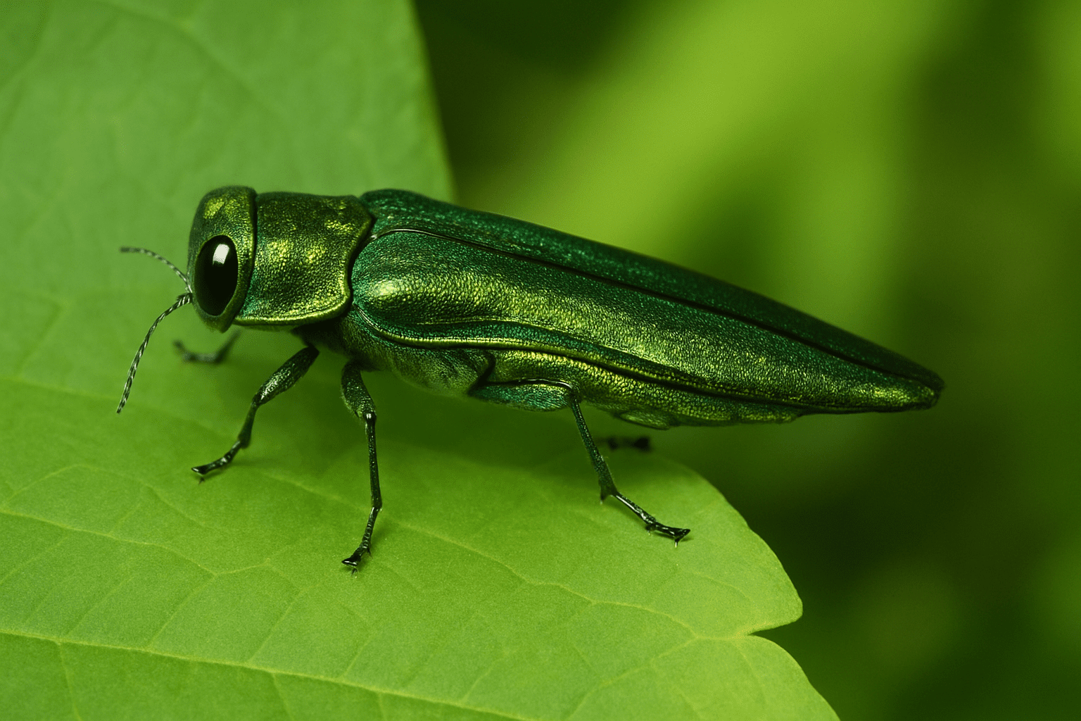 The emerald ash borer beetle is a small, metallic green insect that may not look threatening at first glance. Adults are only about half an inch long, but the real damage comes from their larvae.